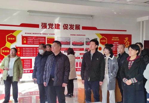 新宏昌重工集團相關負責人向考察團一行詳細介紹了集團發展歷程和以黨建工作帶動生產經營,推動公司發展,形成黨建工作與公司發展相融互促的做法經驗。