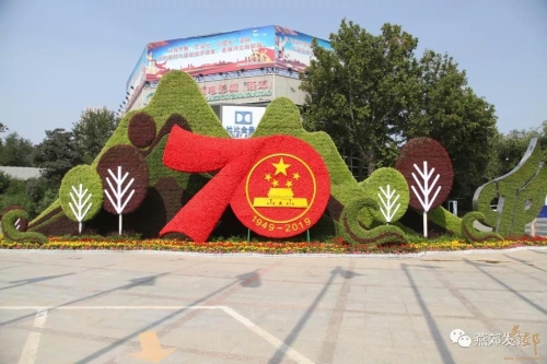為喜迎新中國成立70周年,我區(qū)在燕郊影劇院前廣場、迎賓路與燕新大街交口、京榆大街與京哈公路交口等路段擺放“慶祝新中國成立70周年”、“偉大復(fù)興中國夢”等主題花壇。造型新穎、色彩鮮艷的國慶主題花壇,吸引了不少市民前來觀賞拍照。