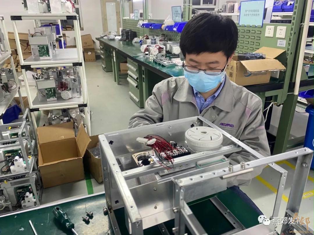 河北誼安奧美醫療設備有限公司主要生產呼吸機、麻醉機、手術床和手術燈等醫療器械,企業員工總數94人,目前返崗73人,產能恢復60%。