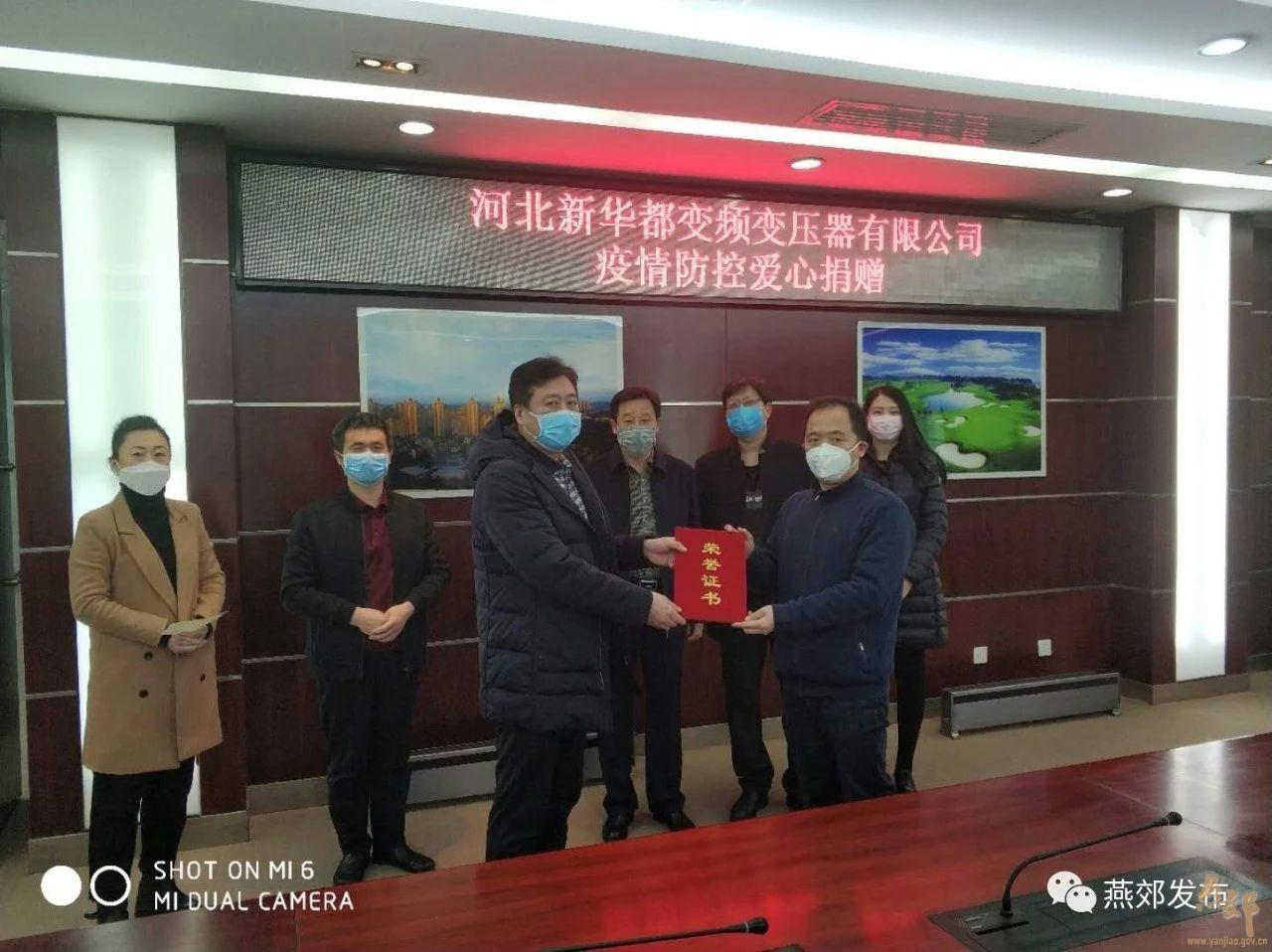 河北新華都變頻變壓器有限公司向燕郊高新區管委會捐贈 200000元,其員工也紛紛慷慨解囊,捐款40310元助力我區疫情防控。