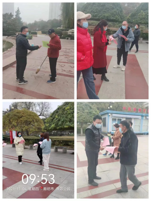 為做好平安建設問卷調查工作,提升人民群眾對平安建設工作的知曉率,推進平安建設相關知識的普及,增強防范和抵御安全風險能力,營造和諧的社會環境,按照市平安辦《關于做好“平安建設”問卷調查工作的通知》要求, 11月4日上午,燕郊高新區在燕郊公園組織開展了積極參與平安建設測評集中宣傳活動。