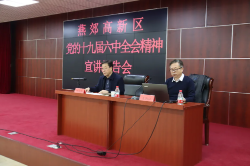 為深入學習貫徹黨的十九屆六中全會和習近平總書記重要講話精神,教育引導黨員領導干部深刻理解黨的百年奮斗的光輝歷程、偉大成就、歷史經驗。11月29日,按照市委開展“走基層”宣講工作的安排,燕郊高新區召開黨的十九屆六中全會精神宣講報告會。高新區領導班子,機關各部門正、副職,一同聆聽報告宣講會。