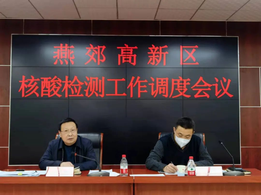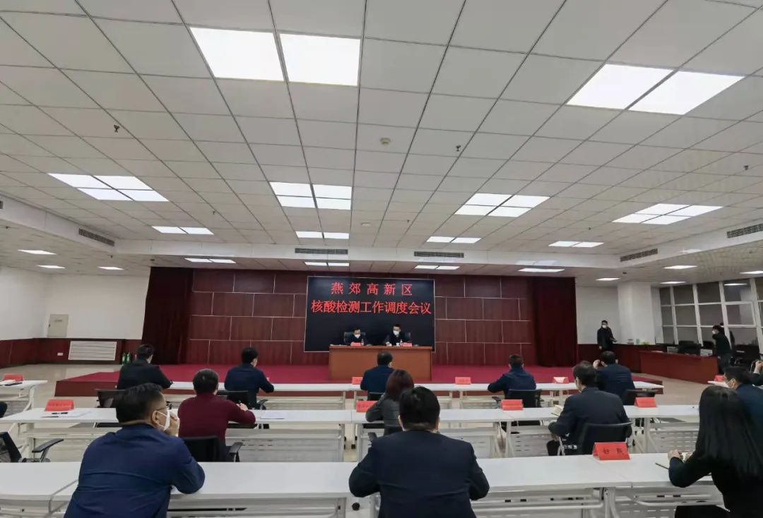 3月21日凌晨12:40,燕郊高新區召開核酸檢測工作調度會議。高新區黨工委書記、管委會主任崔浩泉主持會議,高新區班子成員和各部門正職參加會議。