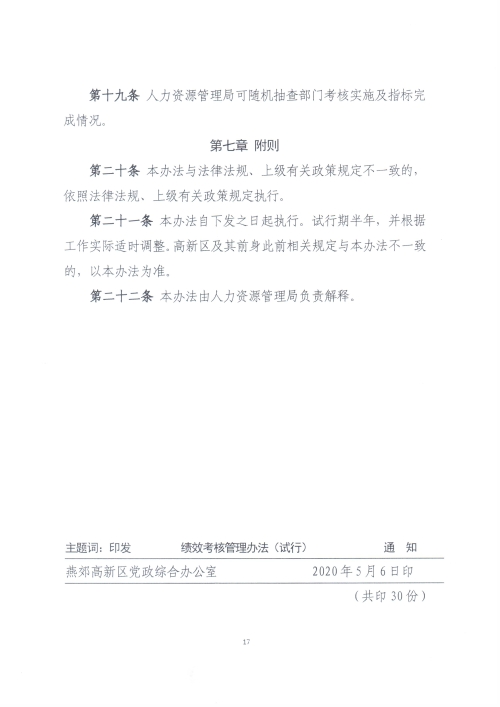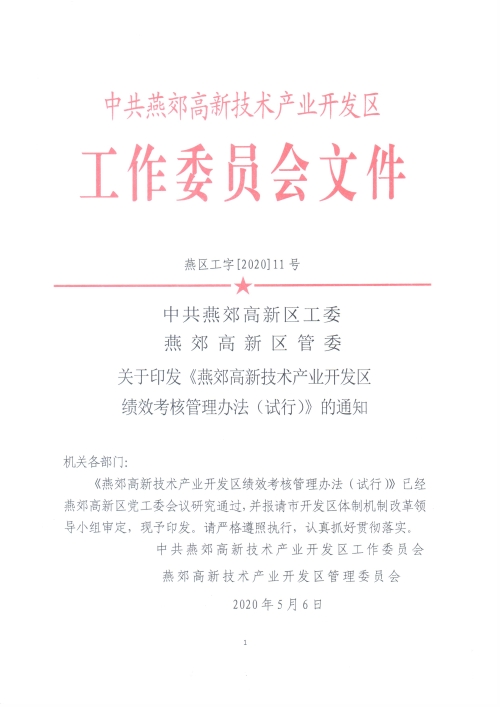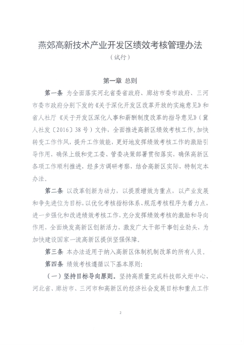 中共燕郊高新區工委燕郊高新區管委關于印發《燕郊高新技術產業開發區績效考核管理辦法(試行)》的通知