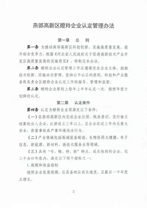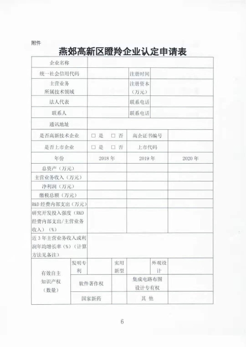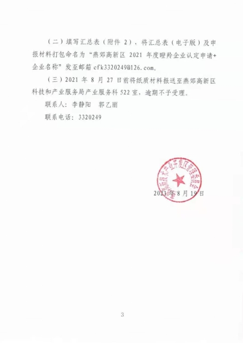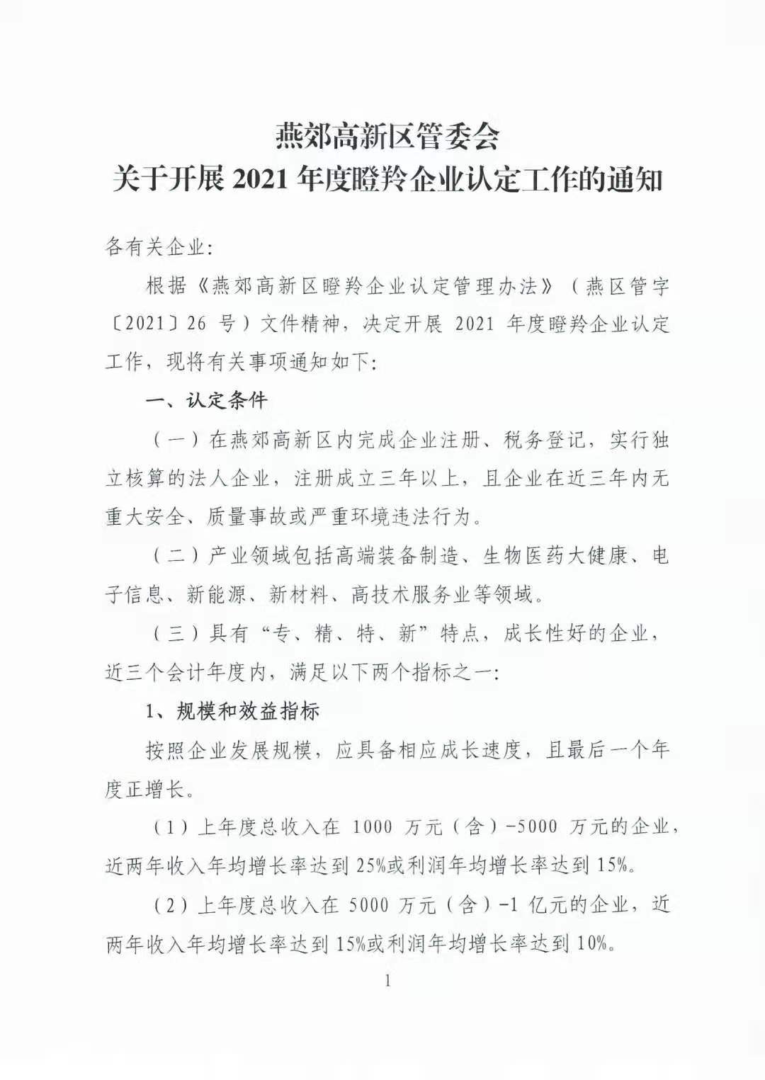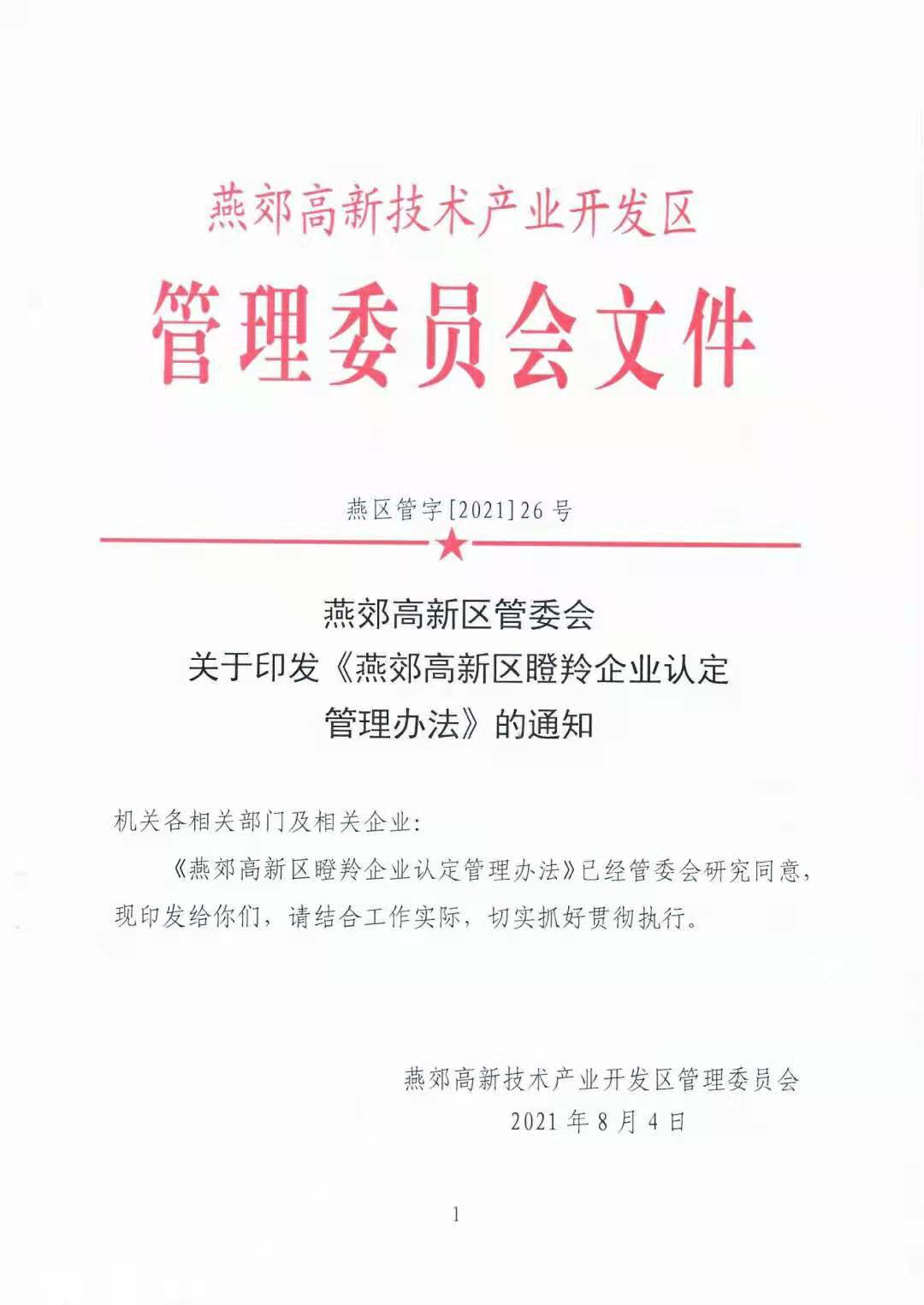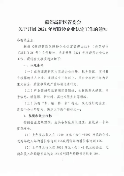燕郊高新區管委會關于開展2021年度瞪羚企業認定工作的通知
