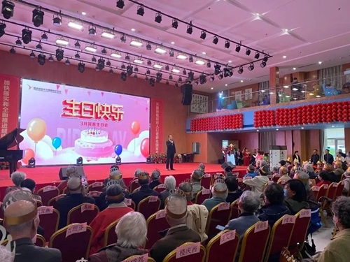 3月29日下午,在燕郊高新區燕達金色年華養護中心大廳,舉辦了一場隆重的三月壽星集體生日會。幾百位壽星如約到場,有序落座,工作人員貼心地為到場壽星佩戴生日帽,送上暖心的生日祝福。壽星們臉上都洋溢著幸福的笑容,工作人員為他們拍照留念,將這個美好、難忘的時刻記錄下來。