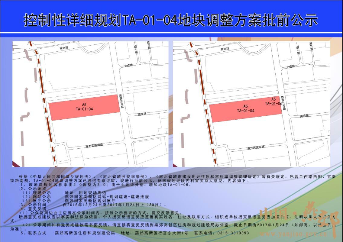 控制性詳細規(guī)劃TA-01-04地塊調(diào)整方案批前公示