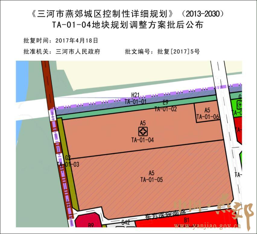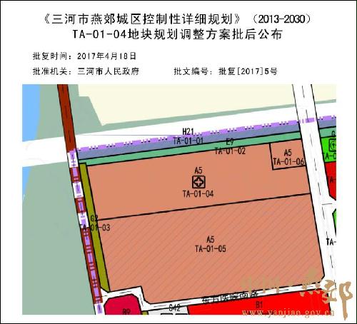 《三河市燕郊城區控制性詳細規劃》(2013-2030)TA-01-04地塊規劃調整方案批后公布