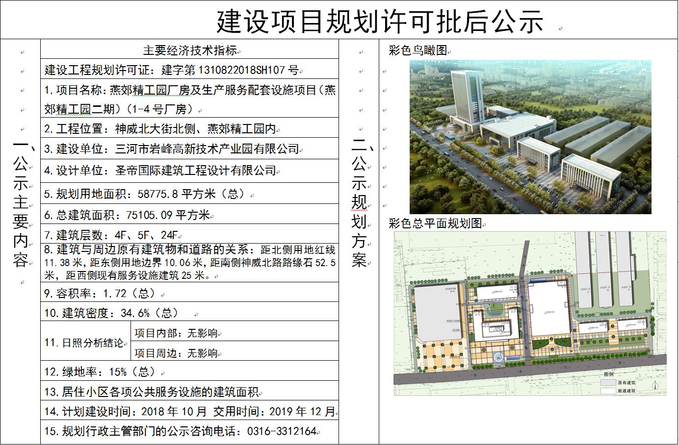 三河市巖峰高新技術(shù)產(chǎn)業(yè)園有限公司申請的燕郊精工園廠房及生產(chǎn)服務(wù)配套設(shè)施項目(燕郊精工園二期)(1-4號廠房)《建設(shè)工程規(guī)劃許可證》于2018年10月12日核發(fā),現(xiàn)依據(jù)河北省住建廳《關(guān)于進一步加強城鄉(xiāng)規(guī)劃公示公布工作的指導意見》(冀建規(guī)【2011】397號),對此項目予以公布。