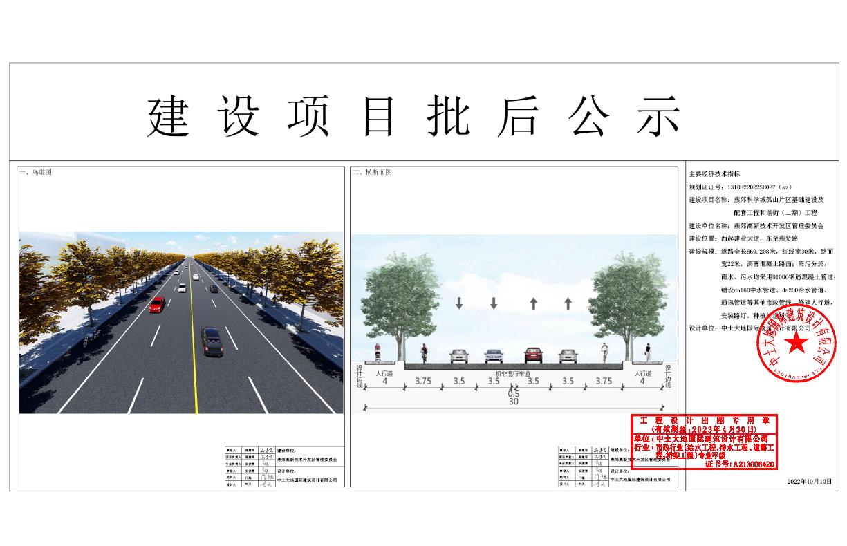 燕郊科學城孤山片區基礎建設及配套工程 和諧街(二期)工程批后公示